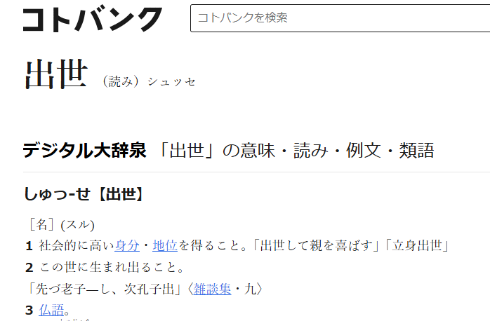 コトバンクさん的には、『社会的に高い身分・地位を得ること』とあります。